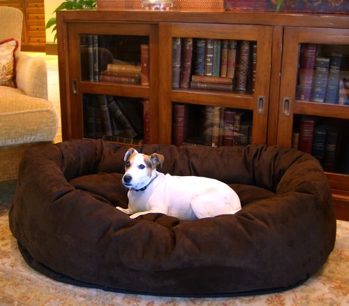 bagel A brand new Bagel Style Pet Dog Bed from Majestic Pet Products with a center cushion that doubles as a removable travel pillow. You will not find a more luxurious pet bed, especially when your puppy finds himself surrounded by a plush bolster that's made for leaning against for those long naps. Made of the finest materials available: a base of heavy duty water proof 300/600 Denier, the Bolster and Cushion are a durable faux suede and stuffed with a Super Premium High Loft Polyester Fiber Fil. Fully machine washable; just place the entire bed in a oversize washer on gentle cycle & air dry. Several colors and sizes available. Sizes available: Small 24" (Outside Dimensions 24"x22"/Inside Dimensions 18"x16"/Bolster 9" High/Cushion 6" High). Small recommended for dogs 10 to 25 lbs. Medium 32" (Outside Dimensions 32"x18"/Inside Dimensions 24"x18"/Bolster 10" High/Cushion 7" High). Medium recommended for dogs 25 to 45 lbs. Large 40" (Outside Dimensions 40"x31"/Inside Dimensions 30"x21"/Bolster 12" High/Cushion 9" High). Large recommended for dogs 45 to 70 lbs. Extra Large 52" (Outside Dimensions 52"x36"/Inside Dimensions 46"x30"/Bolster 14" High/Cushion 10" High). Extra Large recommended for dogs 70 to 110 lbs.Cheap "52" Bagel Dog Pet Bed Suede Chocolate" Discount Review Shop