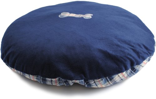 "Brinkmann Pet Round Flannel and Thermal Fleece Dog Bed with Bone Applique, 40-Inch, Navy" Overview