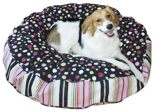 The Scout designer round dog bed will make your will make a fashion statement – for you and your pet. It has durable, double-sewn boxed edges with decorative cording. The reversible design allows for longer use. Hefty zipper is hidden to prevent chewing. Filled with 100-percent post-consumer recycled plastic poly-fiber fill. Made from heavy-duty, upholstery grade fabric with screen printed designs. Removable and machine washable cover with zipper. Made in the USA.Cheap "Happy Hounds Scout Deluxe Round Dog Bed, Extra Small 24-Inch, Black/Pink" Discount Review Shop