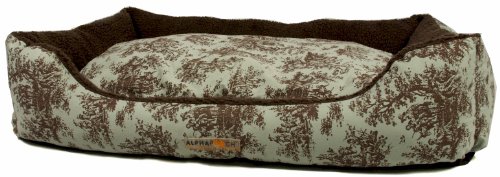 Cheap "Alpha Pooch Cuddler Rectangular Bolster Dog Bed, Celery Toile Fabric with Coco Synthetic Lambskin, Large" Discount Review Shop