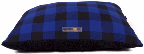 Cheap "Alpha Pooch Softie Rectangular Dog Bed, Blue Check Fabric with Black Synthetic Lambskin, Large" Discount Review Shop
